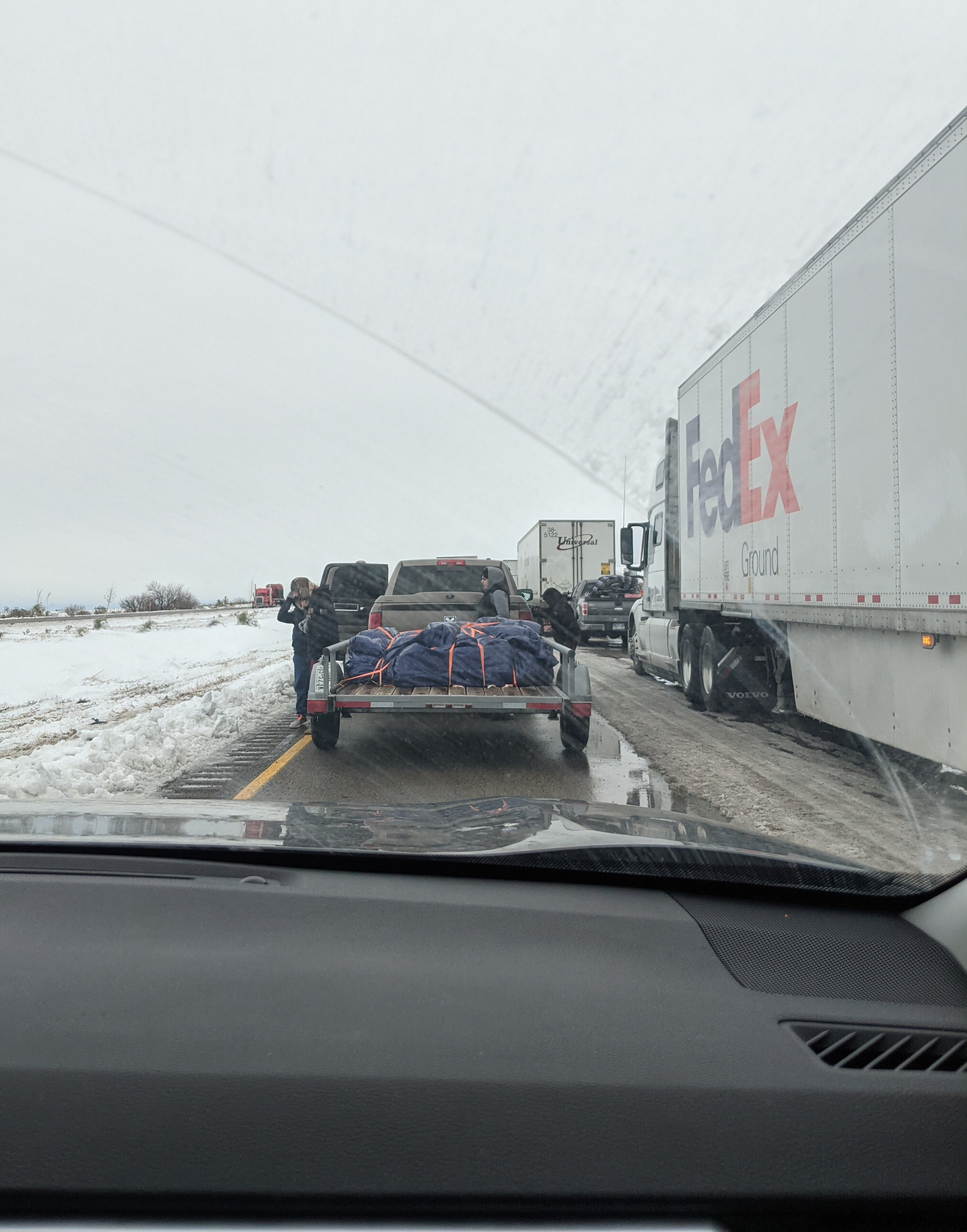 This second dead stop on the highway was where I started to lose it. The snow and ice was worse in this area, and it would have been a lot riskier to try to ford the median to the other side. We had no idea how long we were going to be stuck there, and had zero control over any of it. Also, I realized I needed to use the bathroom again, and on top of that I had only gotten about an hour or so of sleep in the last 24 hours. My husband, ever the optimist, reassured me that we would be fine, would in fact NOT die on the highway, and that we would see our home again soon.