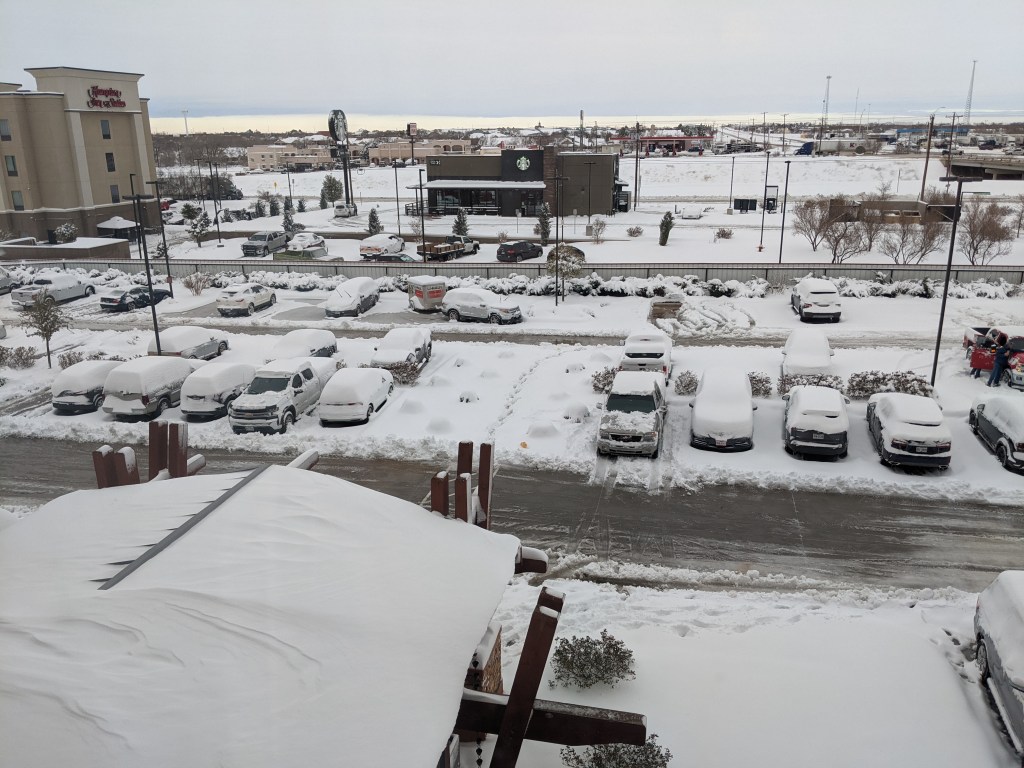 It seems appropriate to post this today, as it is currently snowing outside in Abilene, TX. I posted the picture below and said “I can confirm it is much more pleasant to enjoy the snow from inside your own home than on the road or in a hotel.”