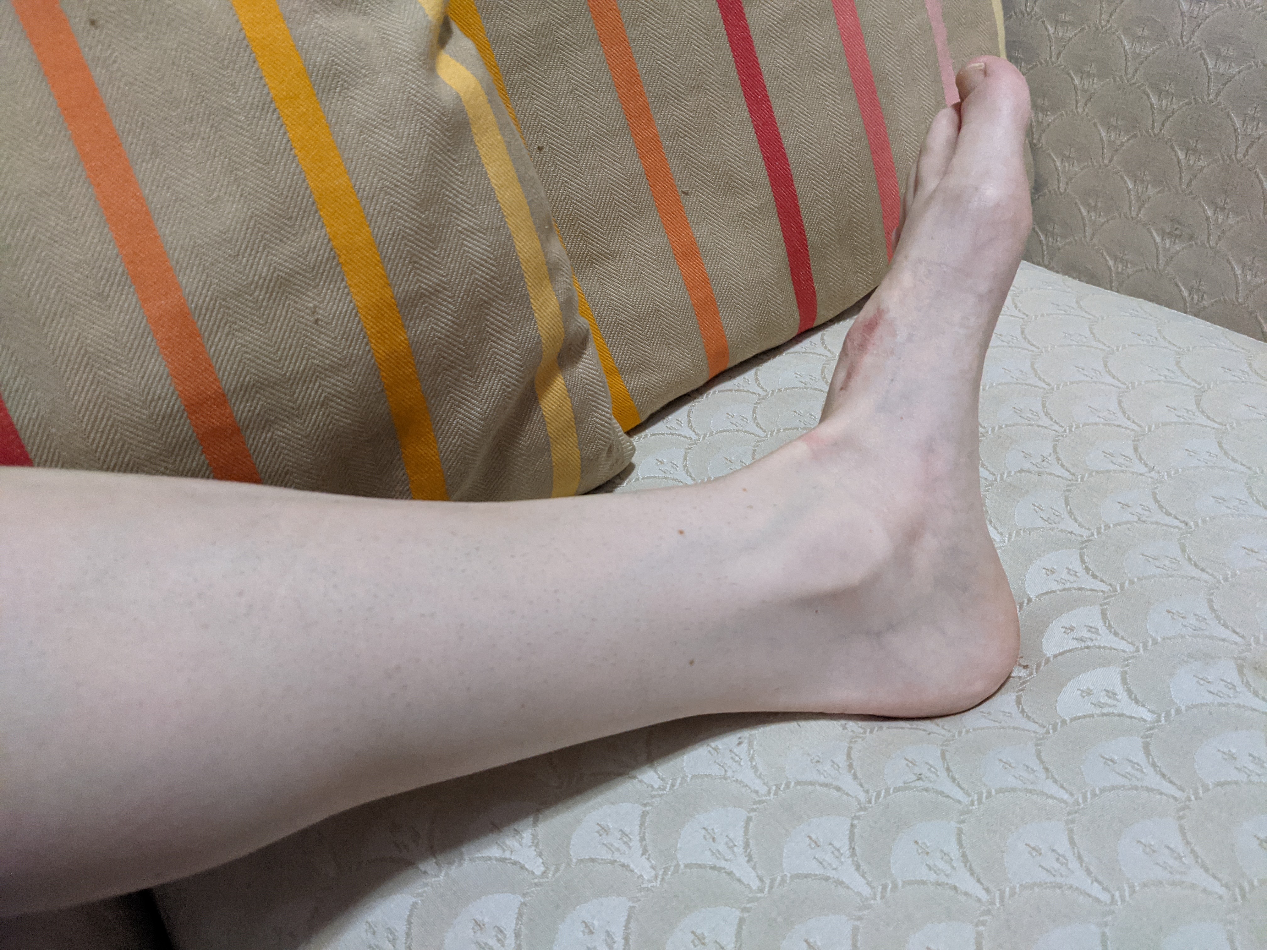 Just as a recap, I had surgery to fix a problem with my posterior tibial tendon… basically my feet have really flat arches and there was a lot of inflammation in my left foot around the tendon that connects from the foot arch to the calf muscle. I had been in a boot for the latter half of 2019, and nothing seemed to be helping my foot get better. Hence, foot surgery! (For a lengthier description of the surgery, you can read my post from May 2020).