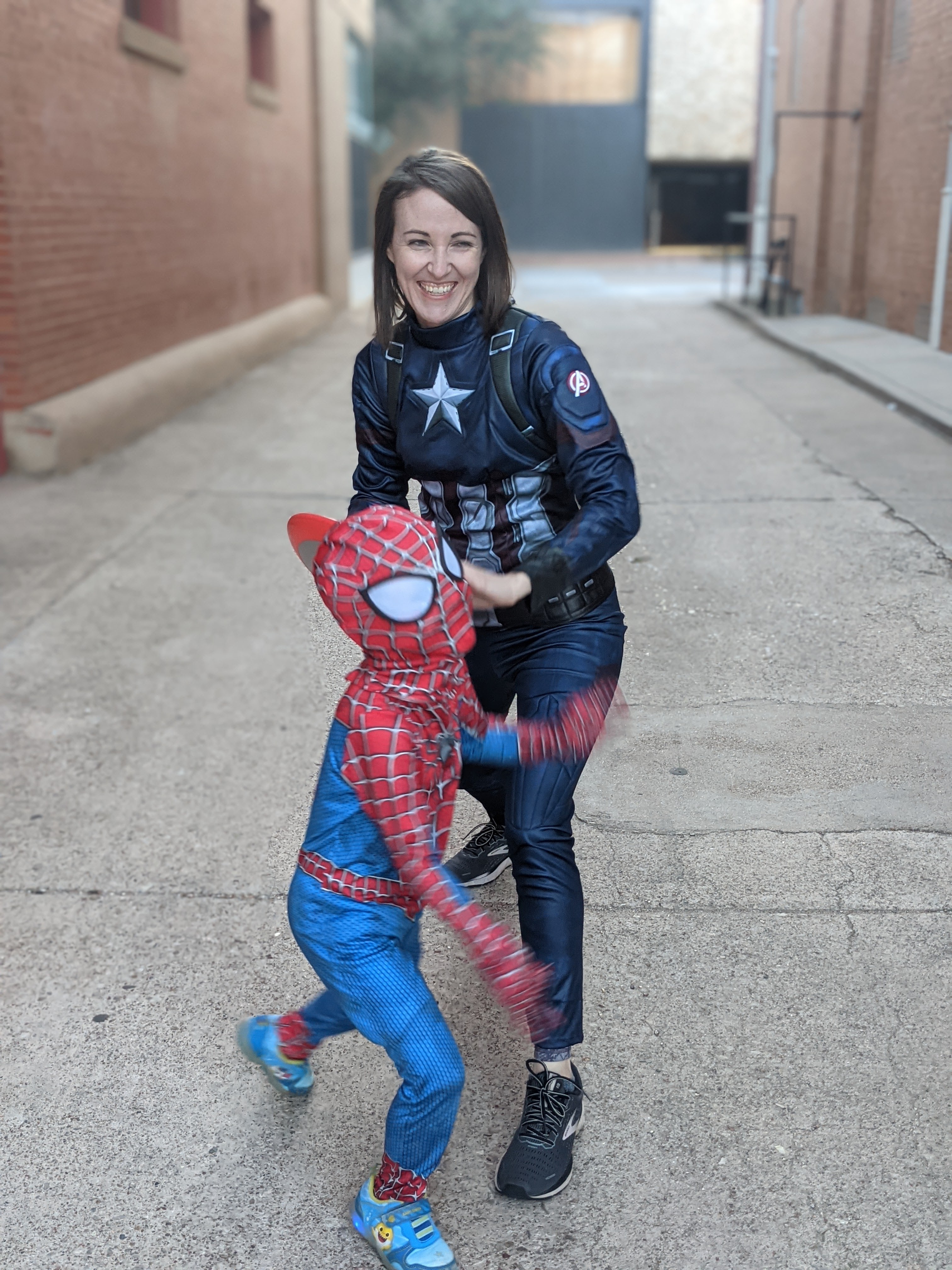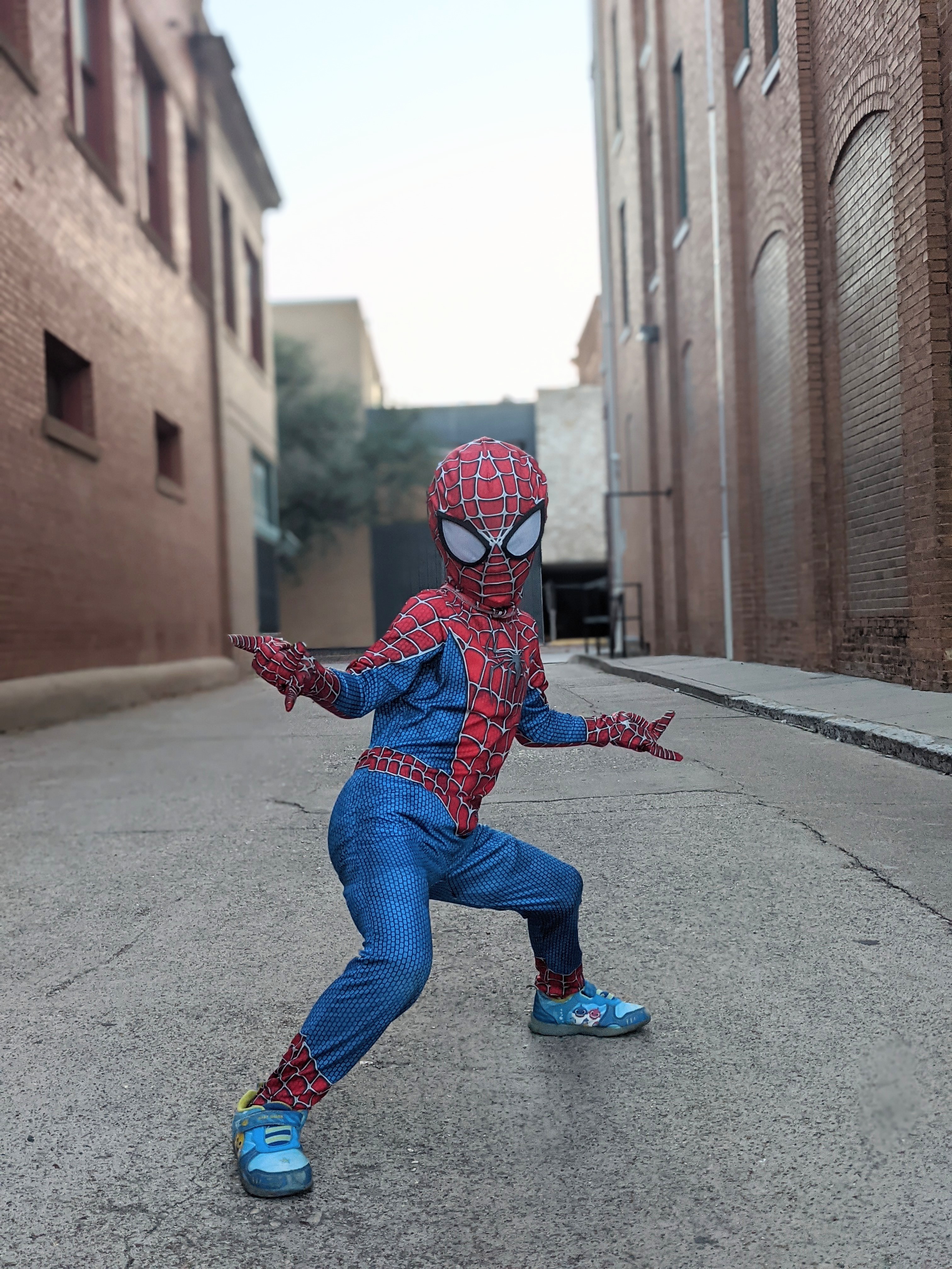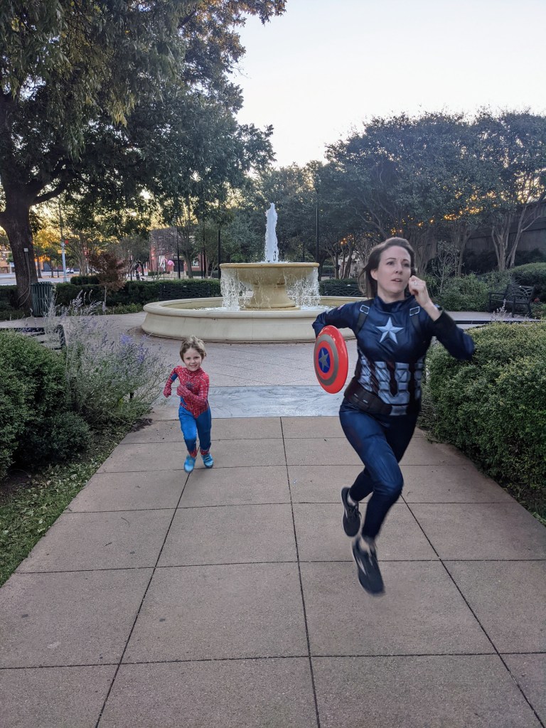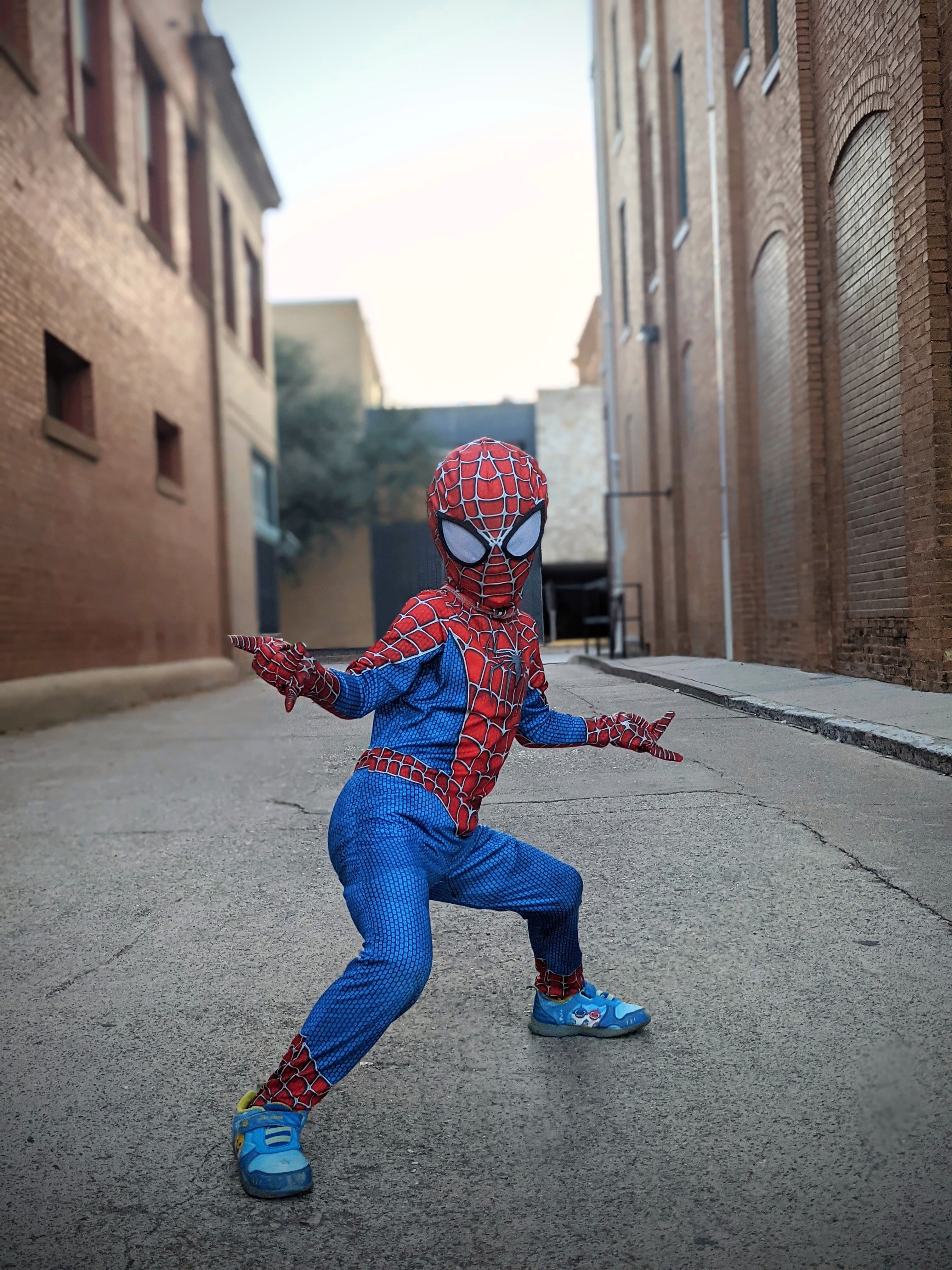 On Sunday my family and I did a makeshift photoshoot in downtown Abilene in our Halloween costumes. I say makeshift because we used only our Google Pixel 4a phones as cameras – and the photographers were myself, my husband, and my 5-year-old son (for a few pictures!) All that to say we are NOT professionals!