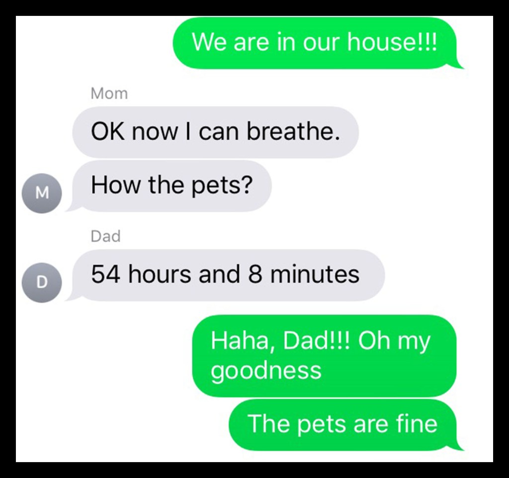 You can read more about the specifics of our journey in Part 1 – the short version is that because of snow and ice, we got stuck on I-10 (meaning a dead stop) for a total of 14 hours, almost doubling our total travel time. It was 31 hours from the time we started the trip until we were able to rest in a hotel, and by the time we made it to our actual house, it had been 54 hours and 8 minutes from when we left (thanks to my Dad for keeping track of the time!)